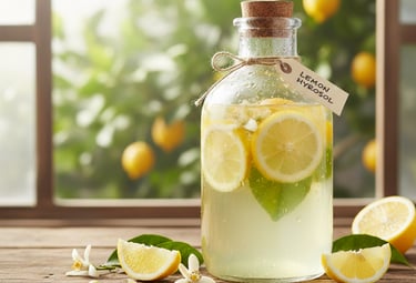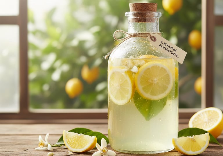A co-product of lemon essential oil distillation, lemon hydrosol provides subtle citrus notes for cosmetic and aromatic use.